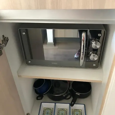 Extras include a microwave oven, an electric kettle, and a refrigerator at a fully furnished kitchen.